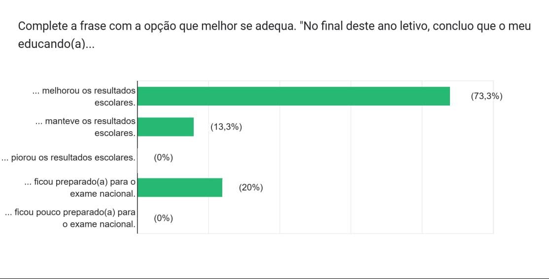 Mais de 73% dos Encarregados de Educação afirmam que os seus educandos melhoraram os resultados escolares ao longo do ano.
